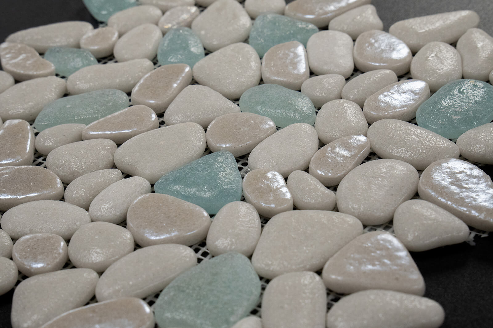 Crafted from recycled glass, Cascade offers a modern, eco-friendly surface in two distinctive shapes. Droplets feature refined penny-round mosaics, while Stones present an organic pebble style, each bringing rich color and luminous depth to walls and accents. Durable and low-maintenance, Cascade requires no sealing and cleans easily, making it a stylish and sustainable choice for contemporary interiors.