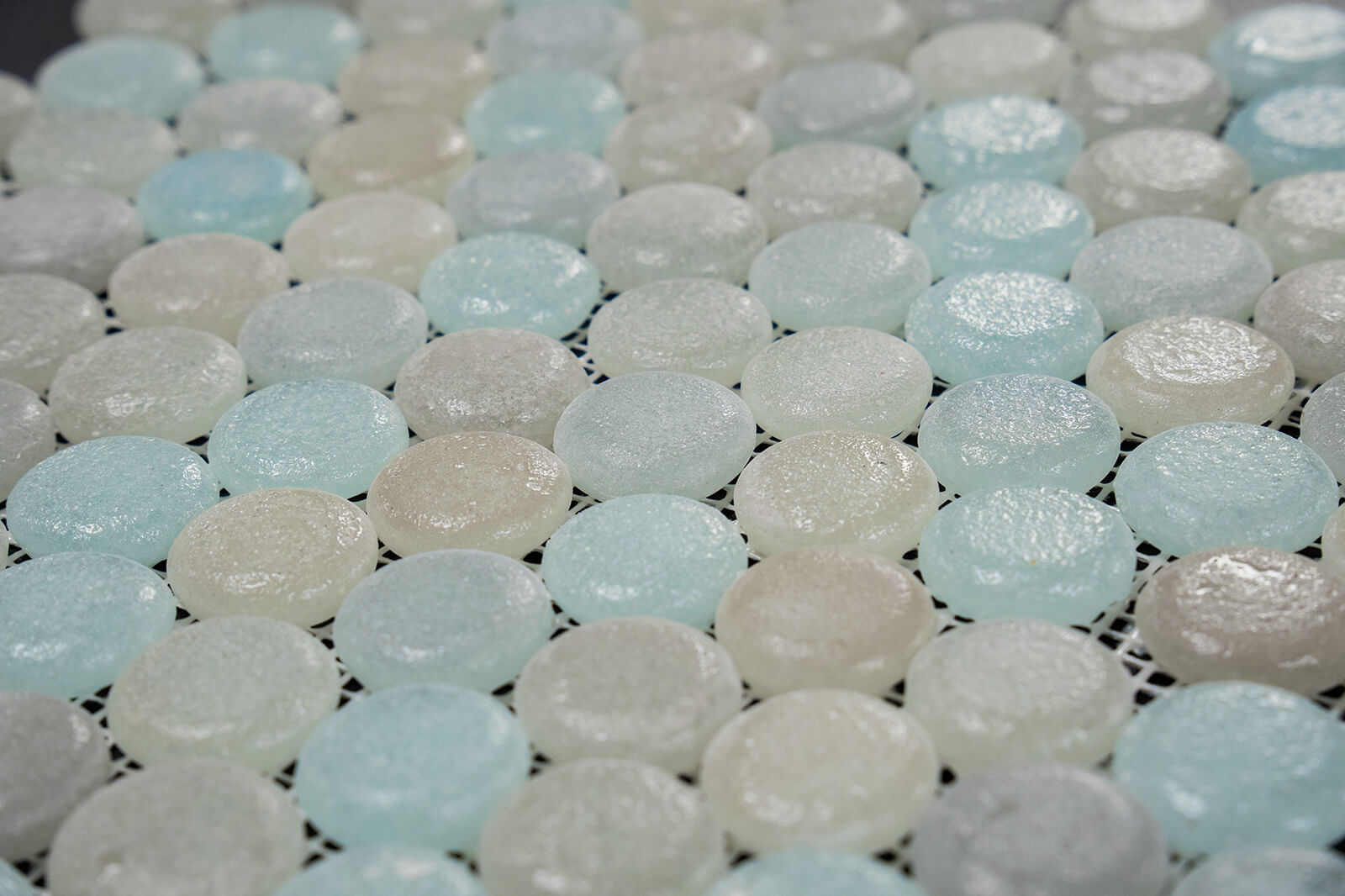 Crafted from recycled glass, Cascade offers a modern, eco-friendly surface in two distinctive shapes. Droplets feature refined penny-round mosaics, while Stones present an organic pebble style, each bringing rich color and luminous depth to walls and accents. Durable and low-maintenance, Cascade requires no sealing and cleans easily, making it a stylish and sustainable choice for contemporary interiors.