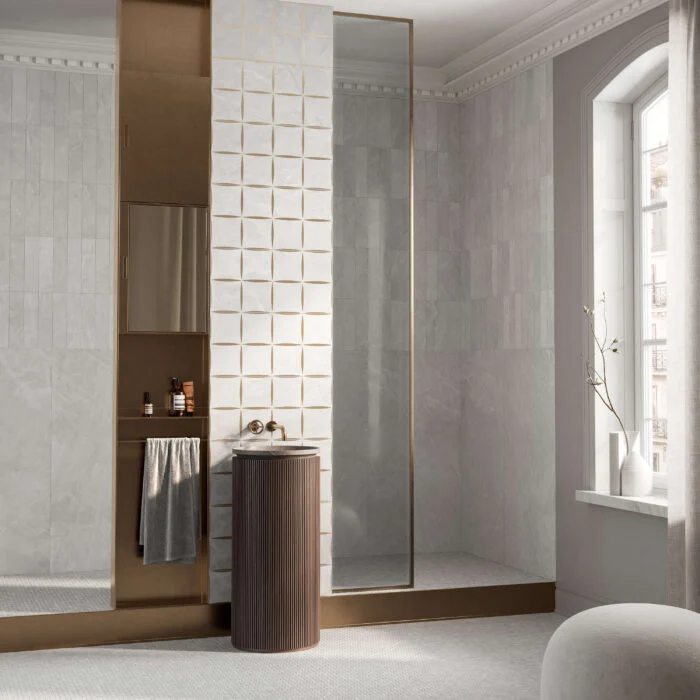 Graceful and contemporary, Costella blends silky satin and high-gloss finishes to create an elevated, luxurious surface. Its refined color palette and subtle depth reflect natural beauty while offering a modern edge, making it an ideal choice for walls or floors where elegance and sophistication take center stage.