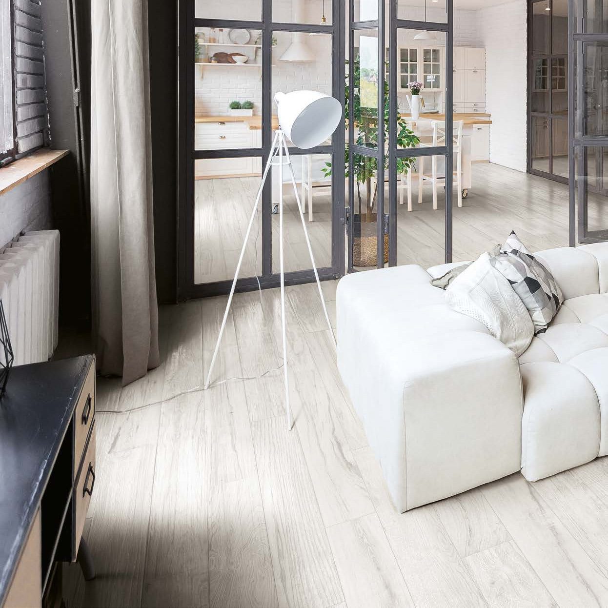 A glossy wood look porcelain tile complements the woods character and natural structure. Making a statement of elegance and subtle sophistication.