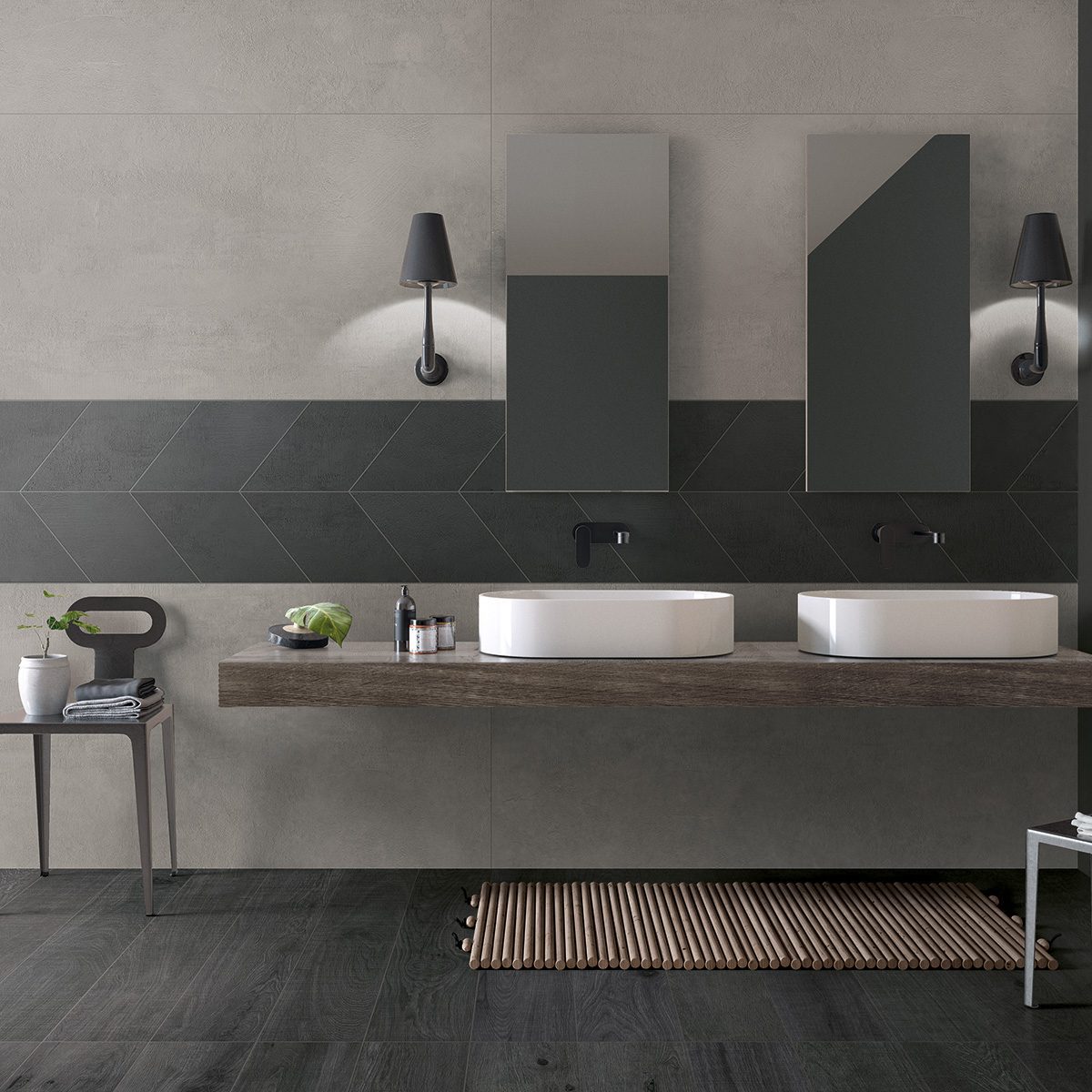 A collection of minimalistic porcelain surfaces inspired by the latest trends in interior design. The materials distinctive grain size and dynamic monochromatic surface create soft and highly realistic graphic effects. Available in a variety of colors and sizes. Including an impressive 10 x 78 plank, a soft elegant 16×32 concrete look, and array of colored organic edged subway tiles to emphasize any wall with a hand made look.