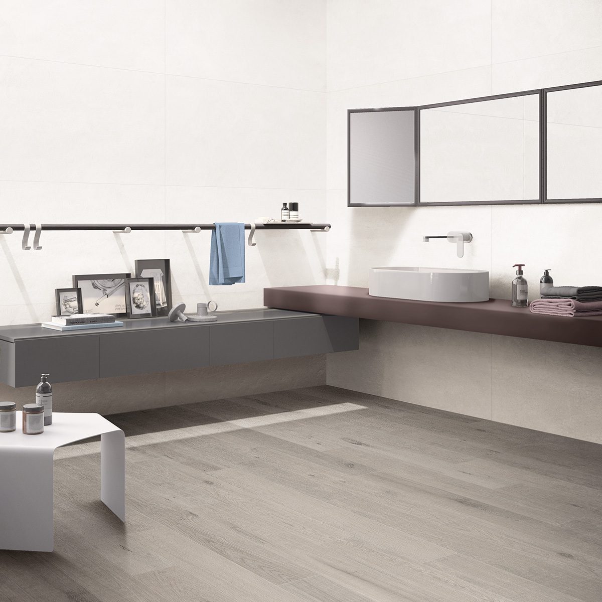 A collection of minimalistic porcelain surfaces inspired by the latest trends in interior design. The materials distinctive grain size and dynamic monochromatic surface create soft and highly realistic graphic effects. Available in a variety of colors and sizes. Including an impressive 10 x 78 plank, a soft elegant 16×32 concrete look, and array of colored organic edged subway tiles to emphasize any wall with a hand made look.