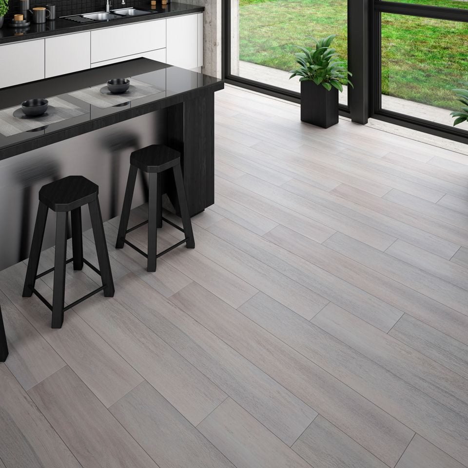 A wood looking porcelain was created with earth elements in mind to create an organic look with a smooth woodgrain finish to this rectified porcelain.