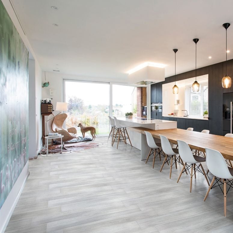 A wood looking porcelain was created with earth elements in mind to create an organic look with a smooth woodgrain finish to this rectified porcelain.