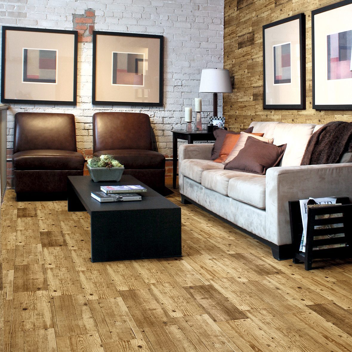 A rustic wood look porcelain tile plank. Lots of natural graining throughout.
